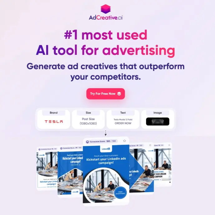 An ad creation platform that uses artificial intelligence to make high-quality, conversion-focused ad creatives and social media post creatives in a matter of seconds.